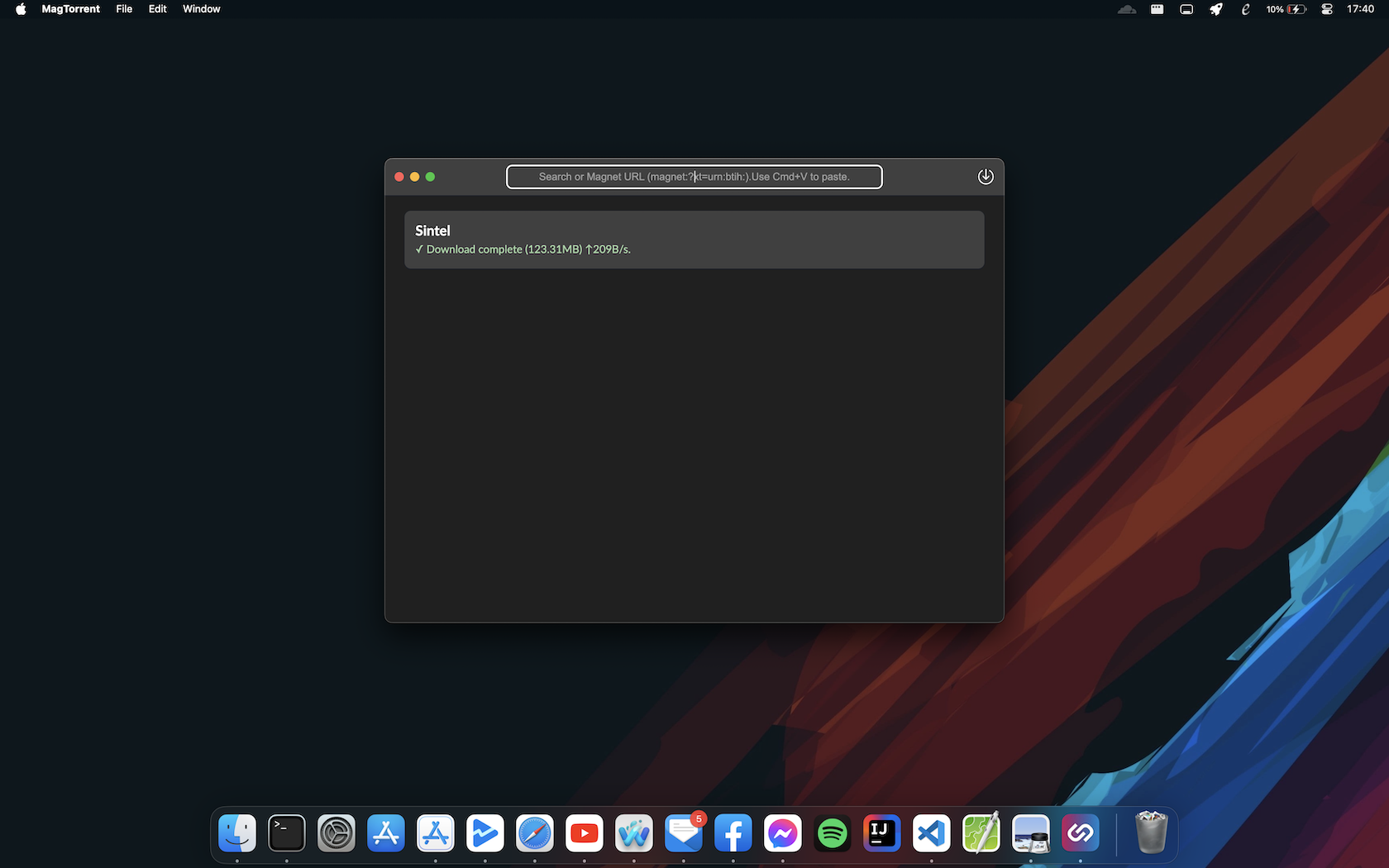 MagTorrent is a torrent app for Windows, Mac and Linux powered by WebTorrent and Electron. The goal of this projects is to build a simple open source torrent application for desktop platforms with these ideas: